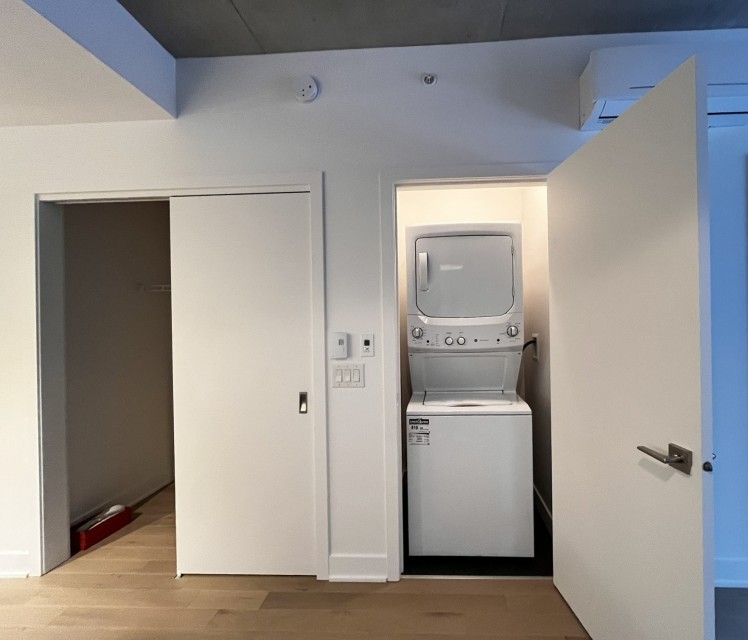 Large, brand new one bedroom condo on the 8th floor with view west. Unit includes all appliances, balcony and a locker. The Auguste Louis project offers amenities such as BBQ area, gym, Urban Chalet with fireplace, Inner courtyard, pool, rooftop Terrace, lounge Area, inner courtyard garden, bicycle space, 2 elevators, intercom, garbage chute, security cameras. Available now. - A satisfactory credit report standing and and proof of sufficient funds to pay rent required. - Heating, electricity , internet, building fees for moving in and out expenses to be paid by the tenant. - Tenant liability 2M proof of insurance required before receiving the keys. - No Smoking, No Cannabis permitted. - No Pets . - No sublease, No lease transfer, No AIRBNB or short term rental permitted. - No holes in the walls or painting the walls without prior Landord's written permission.