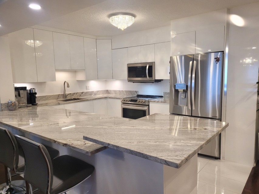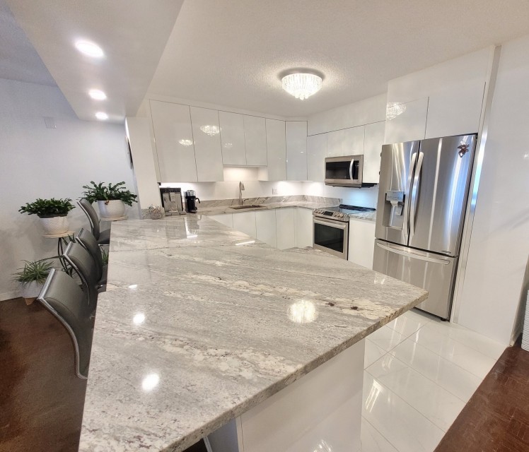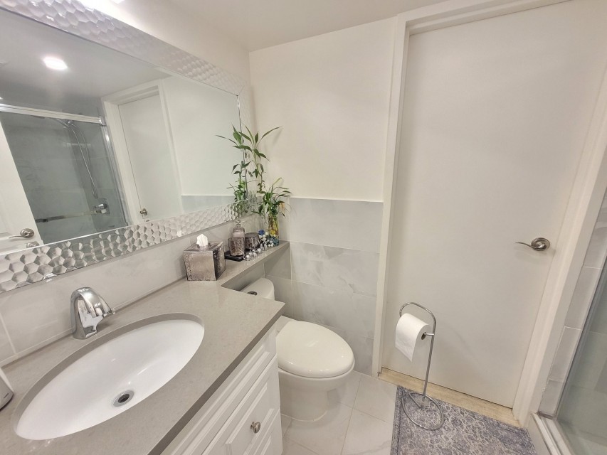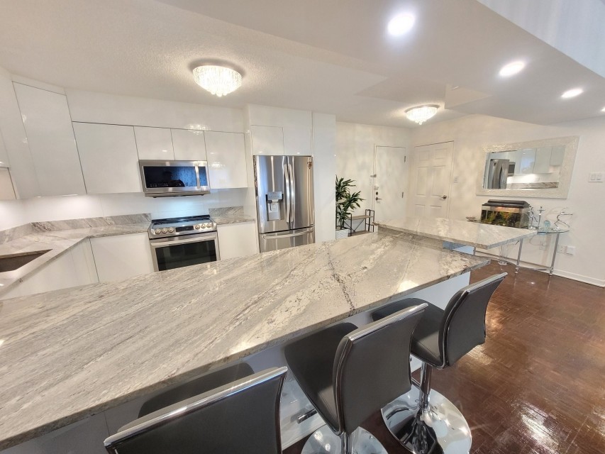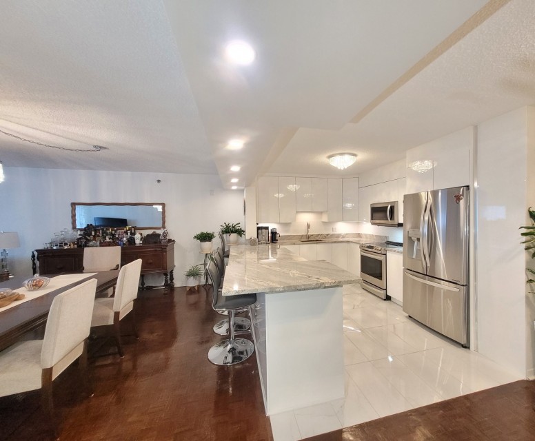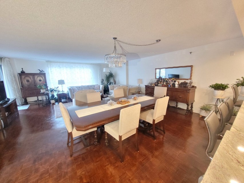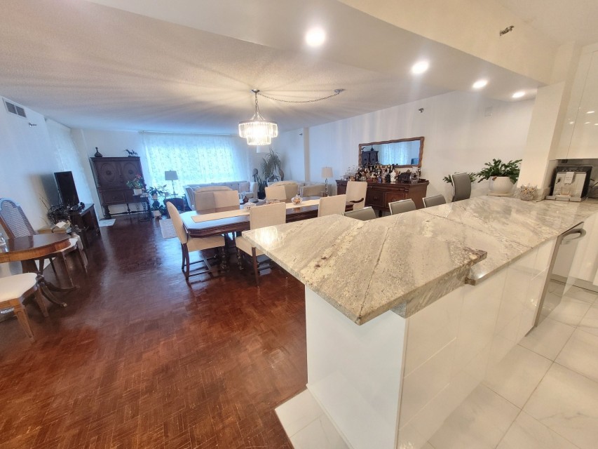 Bright and spacious recently renovated immaculate open concept condo features, 2 bedrooms and 2 full renovated bathrooms. Large renovated kitchen opening into grandiose living dining room area, large windows, parquetry floors, laundry room. A large tiled balcony with access from the living room and both bedrooms. Indoor parking and locker, out door guest parking. Remodeled Kitchen and bathrooms. Highly desirable building in a great location. Doorman and security, exercise room, sauna. Swim year round in the fabulous spa-like indoor and outdoor saltwater pools. Beautiful landscaped grounds. Do all your shopping right across the street at the shopping centre. Close to schools, synagogues and parks. Just steps from the bus stop. Large balcony Roof replaced 2013 Brick pointing 2017 Elevators 2020 Community room to host your large events. Visitors Parking. Across from Cote-St-Luc Shopping Center with Post office. 103 and 420 bus stops steps away from the front entrance.