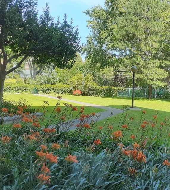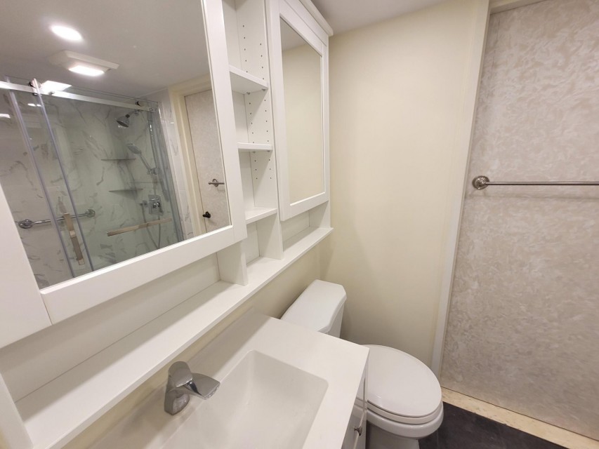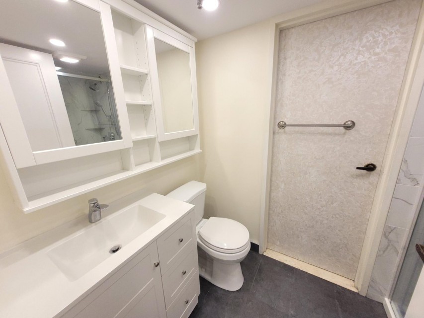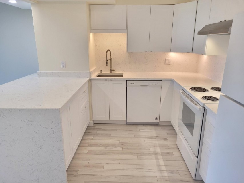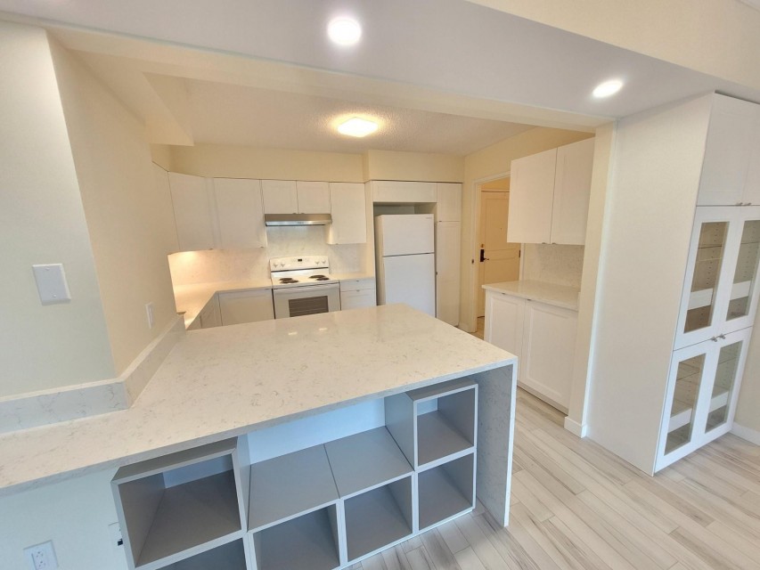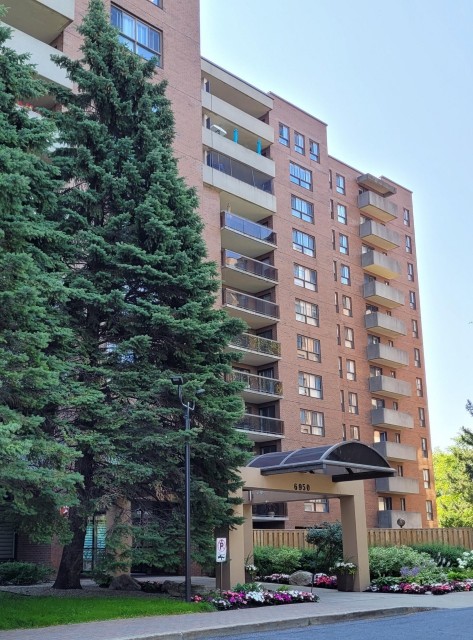 Spacious and bright 2 bedrooms, 1 1/2 bathroom. Open concept living room and dining area. Extensively renovated new kitchen with quartz counter top, new bathroom with shower and new powder room, new energy efficient windows and 3 patio doors 2023 . Large Master bedroom with walk-in closets and en suite new powderroom. Laundry room in the apartment. Indoor outdoor pool,sauna,exercise room, garage and storage locker.Large terrace facing the yard. Presently rented $ 2300 / month till June 30 2026 Extensively renovated new kitchen with quartz counter top, new bathroom with shower and new powder room. 3 patio doors and energy efficient window 2023 5 newer appliances Freshly painted. Large balcony, great view. Roof replaced 2013 Brick pointing 2017 Elevators 2020 Garage 1st level repaired and resurfaced 2024 No short-term rentals as per condo rules, no air B&B type accommodations.