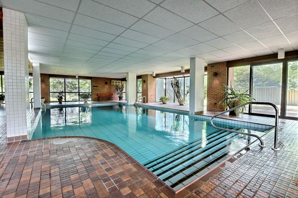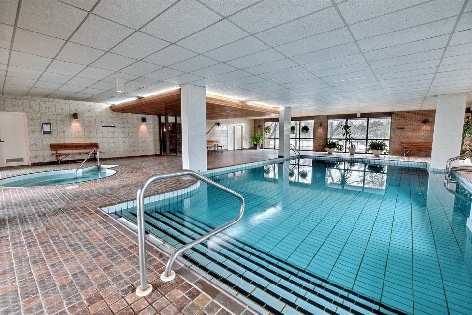 Large 1 bedroom unit, features engineered floors throughout.Large master bedroom .Kitchen with breakfast nook, open to dining, living room area.Indoor garage AA38 Locker 82. Highly desirable building in a great location. Doorman and security, exercise room, sauna. Swim year round in the fabulous spa-like indoor and outdoor saltwater pools. Beautiful landscaped grounds. Do all your shopping right across the street at the shopping center. Close to schools, synagogues and parks. Just steps from the bus stop. Live in Maintenance staff. Community room to host your large events. Visitors Parking. Across from Cote-St-Luc Shopping Center with Post office. 103 and 420 bus stops steps away from the front entrance. Indoor garage # AA38, locker # 82. Indoor outdoor pool,Exercise-room Roof replaced 2013 Brick pointing 2017 Elevators refurbished 2022