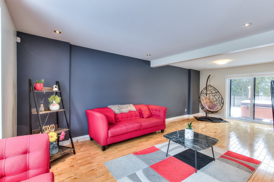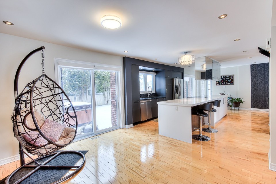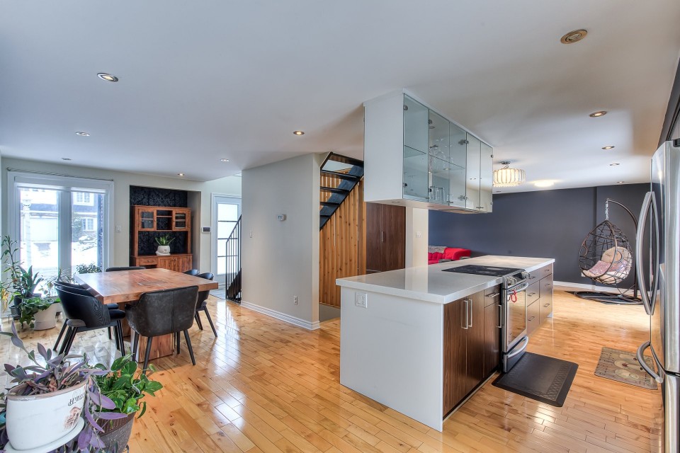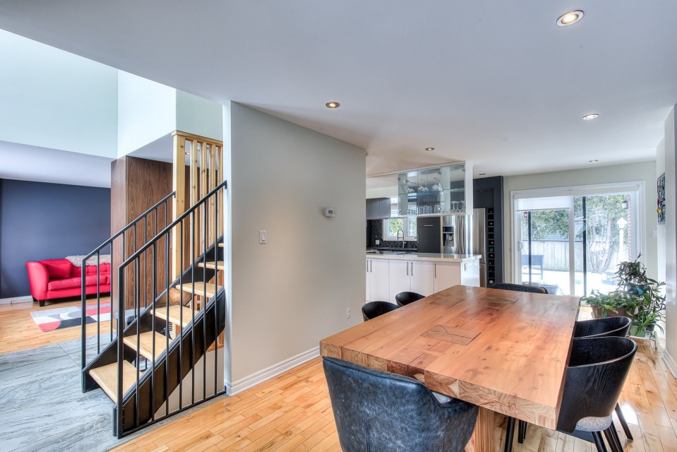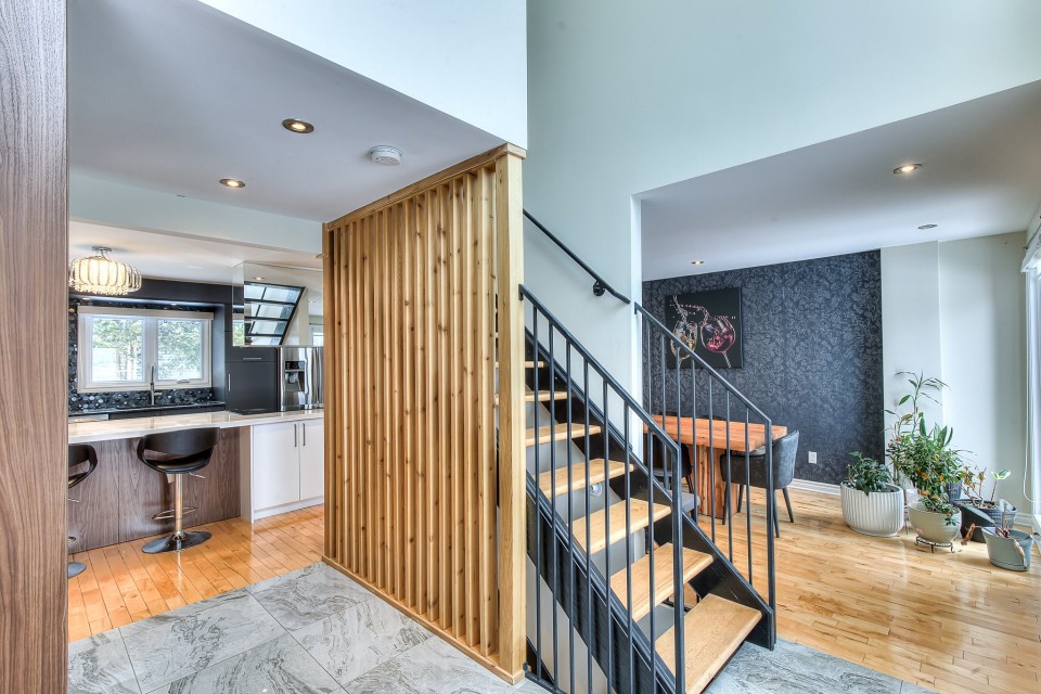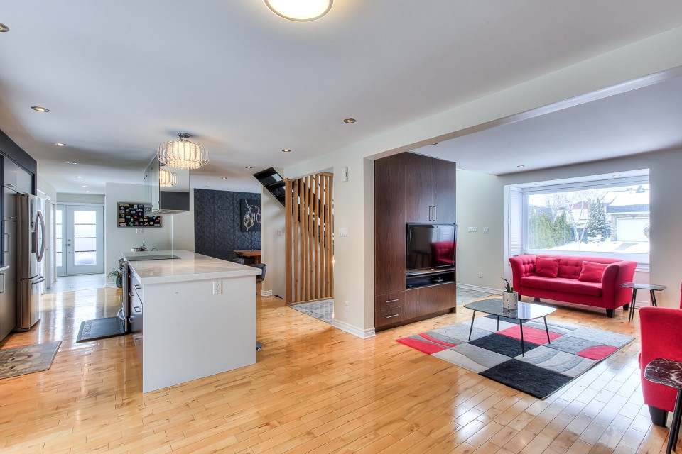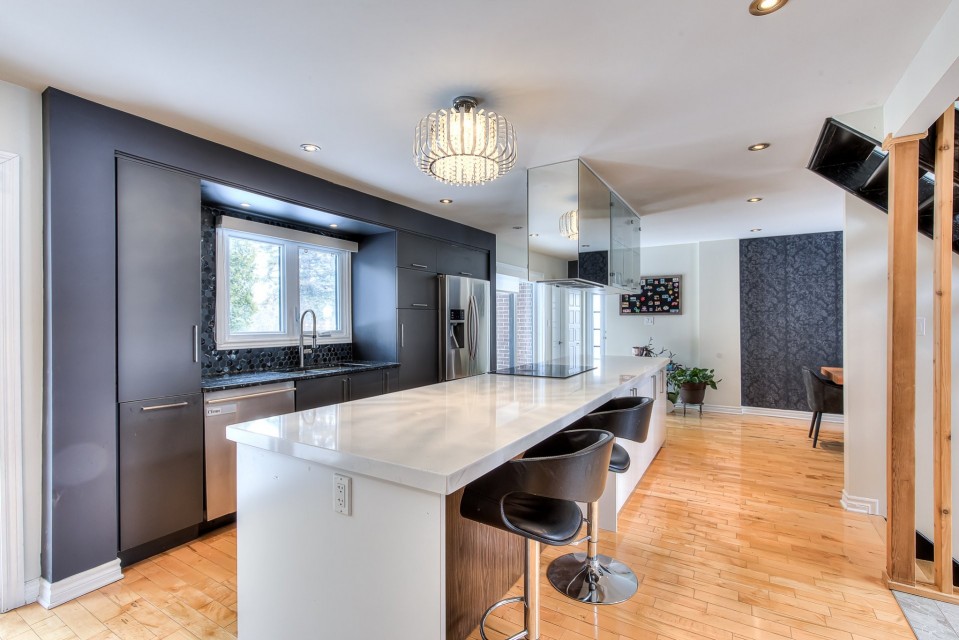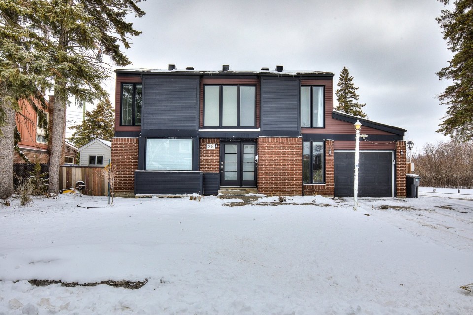WESTWOOD PARK ISN'T JUST NEARBY - IT'S YOUR BACKYARD. Stunning renovated corner-lot home in prestigious Dollard-des-Ormeaux, set directly across from Westwood Park. Elegant hardwood floors, open-riser staircase & chef's kitchen with quartz counters and oversized island. Spacious primary suite with ensuite. Finished basement wired for surround sound. Steps to top-ranked schools, two REM stations & quick access to highways 40, 20 & 13. The West Island lifestyle you've always envisioned -- finally, yours. ELEGANT TURNKEY RESIDENCE | PRIME CORNER LOT FACING WESTWOOD PARK | DDO Welcome to this stunning, fully renovated cottage ideally positioned on a premium corner lot directly facing Westwood Park--an exceptional setting that offers both tranquility and an active family lifestyle. Enjoy immediate access to playgrounds, splash pads, expansive green spaces, and newly developed sports facilities including soccer field and gym, all within a safe and walkable environment. This impeccable turnkey home blends refined modern design with abundant natural light and outstanding functionality. Perfectly located in a sought-after DDO neighborhood, it offers seamless access to essential services, major highways, and the REM network, with close proximity to Galeries des Sources and Centennial Plaza. Highways 40,20 and 13, making commute effortless. Easy drive to Downtown Montreal, West Island Business hub and the Airport. A rare opportunity to own a sophisticated, move-in-ready home in a coveted park-front location--offering the perfect blend of modern luxury, comfort, and convenience. Interior Features Layout & Living Spaces This bright and spacious home offers 3 bedrooms, 2 full bathrooms, and 1 powder room. A striking open-riser staircase elegantly connects the main and upper levels, while large windows throughout flood the home with natural light. The beautifully finished basement features a generous family room pre-wired for a home theatre system, complete with surround sound and projector setup, along with a dedicated office space--ideal for remote work or study. Designer Kitchen A true centerpiece of the home, the kitchen boasts a luxurious oversized quartz island, high-end modern cabinetry, and a sophisticated dark mosaic backsplash. The functional layout is perfectly designed for both entertaining and everyday living. Bedrooms & Bathrooms The serene primary bedroom offers built-in closets and a spa-inspired ensuite bathroom designed for relaxation. The upper-level main bathroom conveniently integrates a laundry area for modern living. Finishes & Comfort Pristine hardwood flooring on main and second levels Premium floating floors in basement living and office areas Fully wired Ethernet connectivity throughout the home. Exterior & Parking Indoor garage (1 space) Driveway accommodating up to 4 additional vehicles Desirable corner lot providing enhanced privacy and curb appeal. Major Upgrades (2014--2017) New electric furnace and complete ducting system Fully updated insulation and Gyproc walls New windows, doors, and mouldings Complete electrical and plumbing upgrades Fully renovated kitchen and bathrooms New hardwood and high-end basement flooring