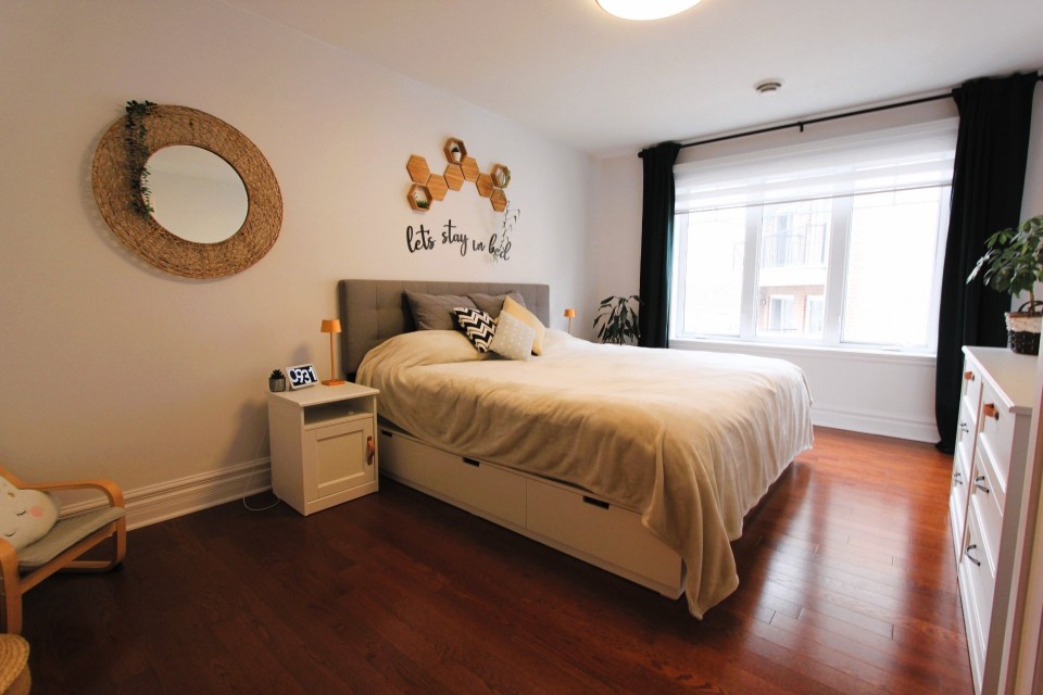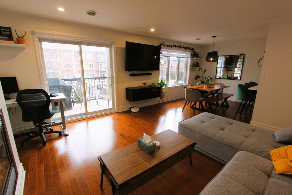 Large and bright two bedroom condo on Boul. Cousineau, located on the third floor. Elevator and one parking spot, all appliances are included. Prime location, close to major centers, 10 minutes from promenades St-Bruno, 15 minutes from Dix30 and du Quartier REM station and 25 minutes by car from Montreal! Close to all services on foot. -Prospective tenants must provide a complete credit report, proof of employment and income and personal information. -No smoking or pets allowed. -No cultivation of marijuana/cannabis -No consumption of Cannabis in the condo or in the common areas. -Tenants must purchase tenant home insurance before moving in and provide a copy. -The use of the property as an airbnb and any short-term rental is prohibited.