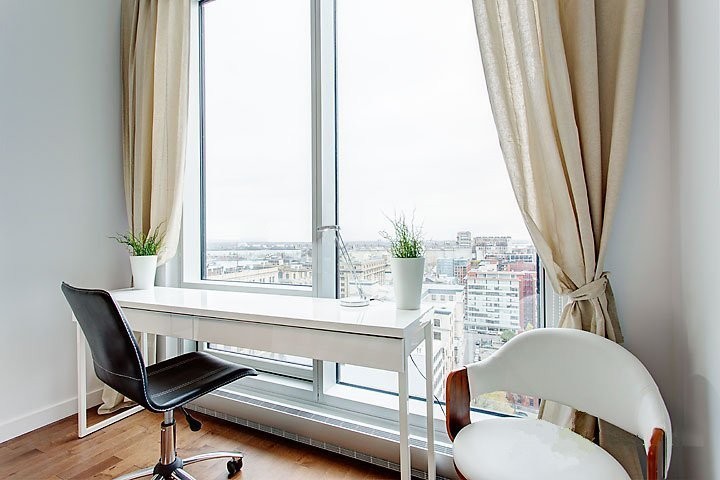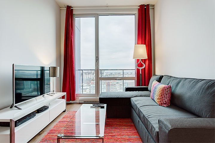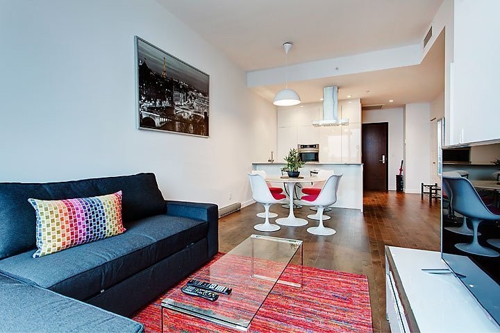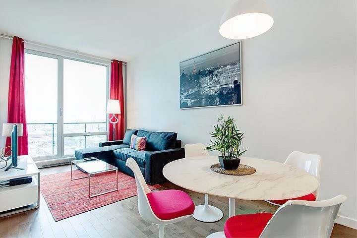 Superbe condo de luxe de 1 cac entièrement meublé au 18e du projet de condos de luxe ST-M, idéalement situé entre le charmant Vieux-Montréal et le quartier branché de Griffintown. Des pièces spacieuses plus balcon ensoleillés avec vue du centre ville. 1 parking + locker inclut. Immeuble offre piscine,sauna, gym, concierge 24 hrs. Disponible le 06 juin 2026.