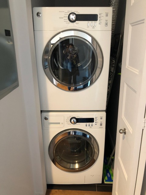 meubles, frigidaire, four, plaque de cuisson, lave-vaisselle, laveuse, sécheuse, stationnement SS2-28, et rangelment/locker SS2-33.