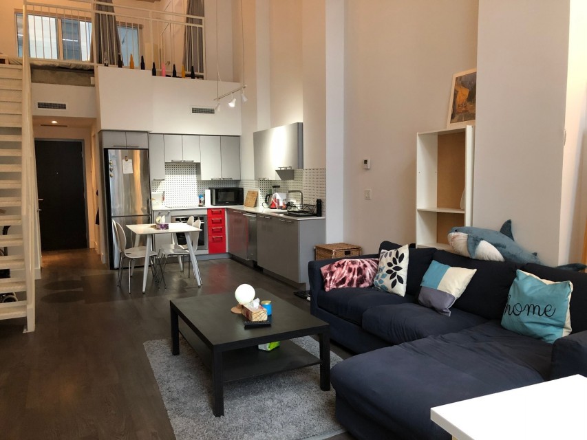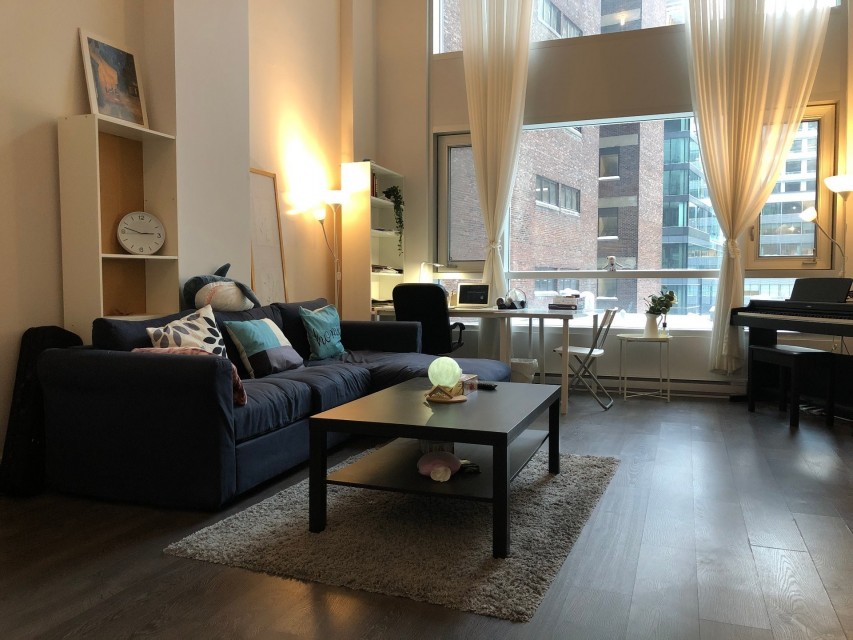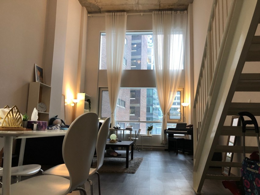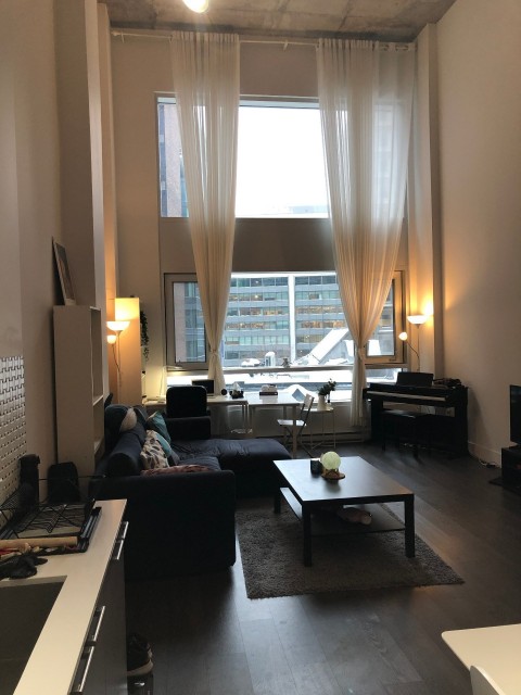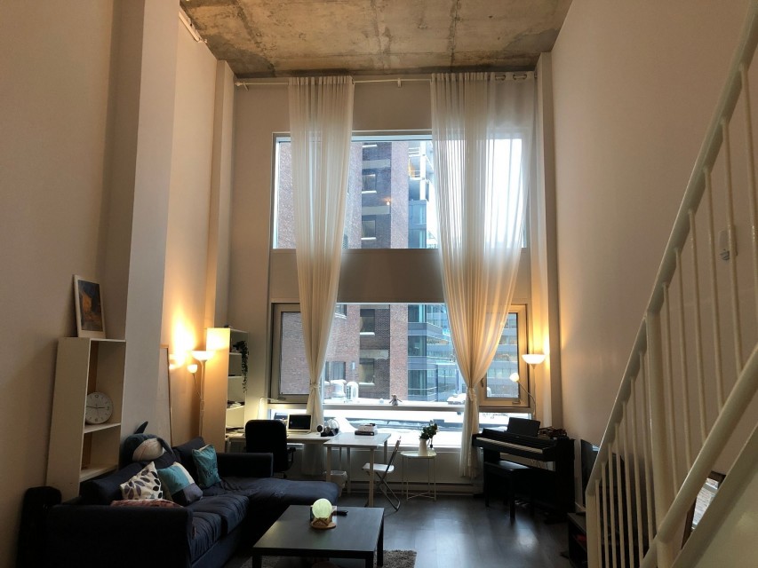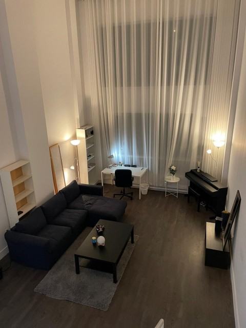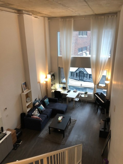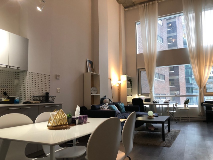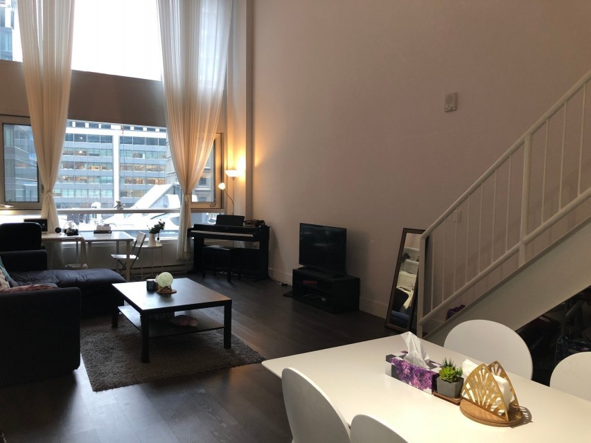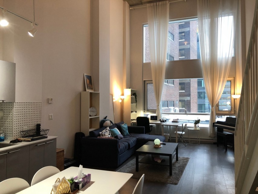 MEUBLÉ! Le Peterson Condo Loft sur 2 étages. Ce condo spectaculaire et aéré offre des plafonds de 18 pieds et un très grand mur de fenêtres laissant entrer beaucoup de soleil. Louez ce condo spacieux et soyez branché au Quartier Financier, l'Université McGill, les transports en commun et le fameux Quartier des Spectacles de Montréal! Disponible le 1 juin 2026. Voici un grand LOFT sur 2 étages offrant une chambre à coucher au mezzanine et une grande surface ouverte au niveau principal comprenant salon, salle à manger, cuisine et buanderie équipée. Le plafond est de 18 pieds avec de la fenestration du sol au plafond. La cuisine est complètement équipée avec les électros modernes en acier inoxydable, comptoir en quartz et un grand évier inoxydable. Le luxueux bâtiment Le Peterson vous offre la sécurité 24/7, 3 ascenseurs rapides, une suite d'invités pour vos visiteurs et CINQ (5) espaces communs pour vous détendre: Au rez-de-chaussée se trouve: 1) un salon de piano calme, 2) une salle de jeux/fêtes avec une télévision grand écran, table de billard, 2 tables de babyfut, machines à pop-corn et Nespresso, ainsi qu'une cuisine de présentation pour vos événements, et 3) salle de vélo. Au 28é étage se trouve 4) l'incroyable skydeck ouvert, comprenant BBQ, mur d'escalade et une zone « relax » pour prendre du soleil et jouir de la vue formidable sur la ville, et 5) le gym avec une fenestration du sol au plafond, faisant tout le coin sud-est, et offrant une belle vue continue sur le Quartier de Spectacles et la fleuve St Laurent! À noter: Le cannabis et la sous-location à court terme, ou Air BnB ne sont pas permis dans l'immeuble Le locataire doit prendre une assurance avec responsabilité civile avant d'emménager, et payer les frais de déménagement de l'immeuble. Disponible le 1 juin 2026.
