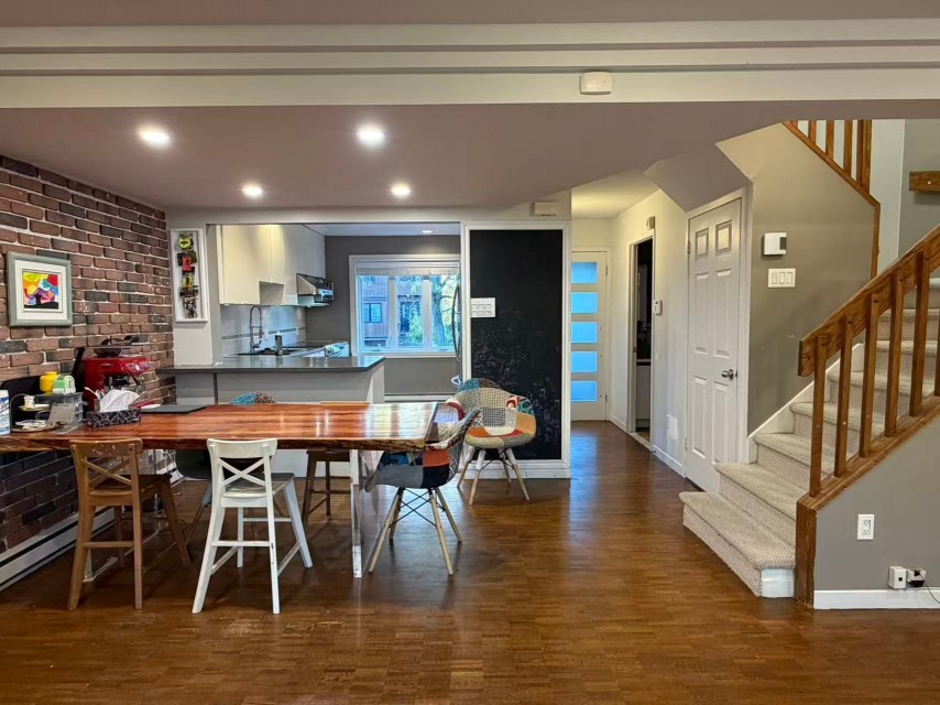 Located on a quiet, tree-lined street in Île-des-Soeurs, this bright townhouse blends comfort and creativity. The open-concept kitchen, dining, and living room invite shared moments of cooking and laughter with loved ones under the soft glow of the four-season solarium. Three bedrooms upstairs, a cozy family room in the basement, and a private terrace framed by mature trees. Perfect for those seeking easy access to downtown and the South Shore while enjoying the calm of surrounding parks and nature. Welcome to this charming townhouse in the heart of Île-des-Soeurs, one of Montréal's most desirable and peaceful communities. Nestled on a quiet street lined with mature trees, this home offers a perfect harmony between modern convenience and natural serenity. The open-concept main floor creates a warm and inviting atmosphere, where the kitchen, dining area, and living room flow seamlessly together. It's an ideal setting to cook, share meals, and enjoy precious moments with family and friends while sunlight fills the space through the solarium-style windows. The artistic design and generous fenestration give the home an airy, creative feel throughout the seasons. Upstairs, three comfortable bedrooms provide calm and privacy for every family member. The finished basement adds a spacious family room--perfect for movie nights, a playroom, or a home office. Step outside to enjoy your private fenced terrace, surrounded by mature greenery that enhances the feeling of living close to nature while remaining just minutes from the city center. Île-des-Soeurs is celebrated for its unique location in the Saint Lawrence River--offering quick access to downtown Montréal and the South Shore, yet maintaining a calm, exclusive environment. The area provides all amenities within walking distance: excellent schools, restaurants, parks, golf, waterfront trails, public transport including the new REM, bus routes, and highway access. This home offers the ideal balance of style, light, and lifestyle--a rare opportunity to enjoy modern living in a peaceful island setting. - Réseau express métropolitain (REM) -- the Île-des-Soeurs station is on the island, offering easy rapid-transit access to downtown. - Several bus lines and quick access to major highways (Hwy 10/15 and the Champlain Bridge), facilitating travel to downtown and the South Shore. - Numerous parks, green spaces and waterfront trails along the Saint Lawrence River, ideal for cycling, walking and enjoying nature. - Elementary schools and daycare-service options within the neighbourhood. - Grocery stores, restaurants, cafés and local shops within easy reach. - Golf and recreation facilities nearby. - Library and community facilities supporting families and newcomers.