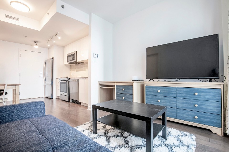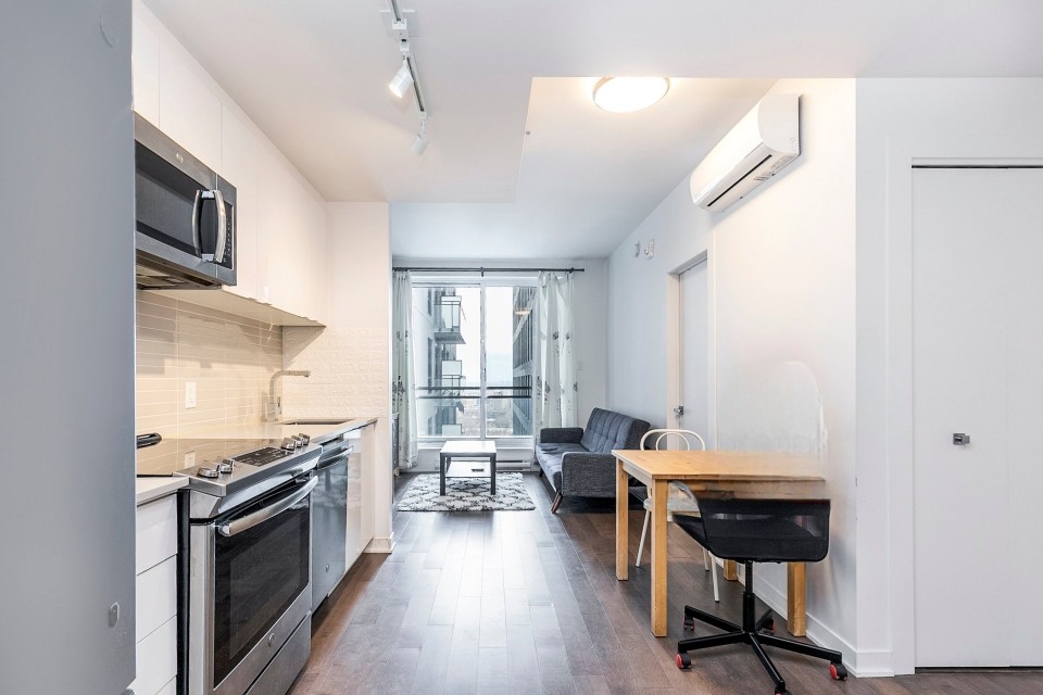 A corner unit: lowest price, a lovely one bedroom condo in heart of downtown Montreal. Open concept kitchen and living room, beautiful sunshine in living room and bedroom, the large window and balcony. Equipped with gym and rooftop swimming pool. A corner unit, lowest price! Ideal location within walking distance of all amenities: - In the heart of downtown Montreal and the Golden Square Mile - Near all the best shops, restaurants, bars & cafes. - 3 minutes walking to Metro Guy-Concordia Metro Station. - Steps from Concordia University and McGill University
