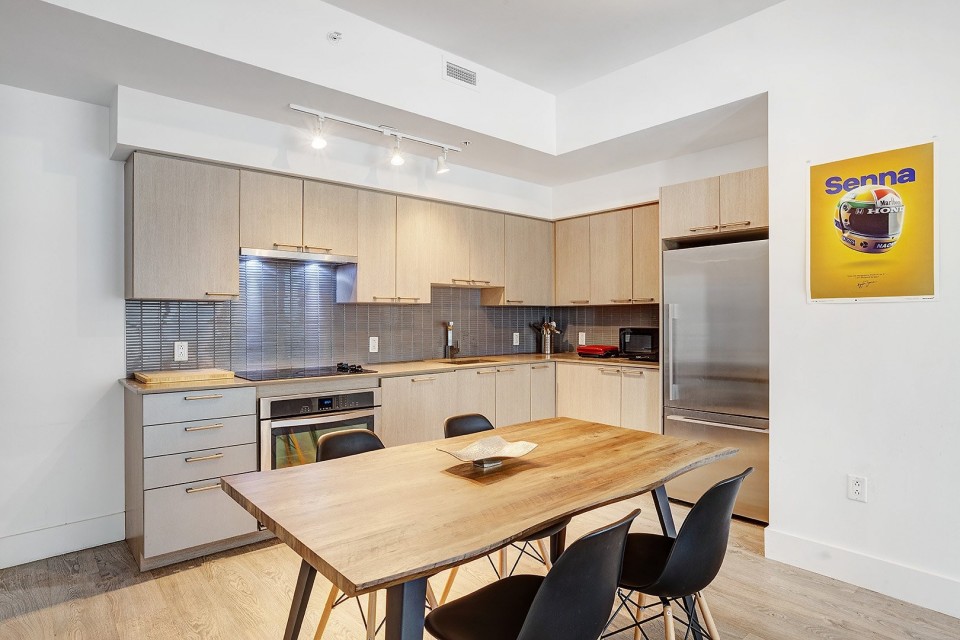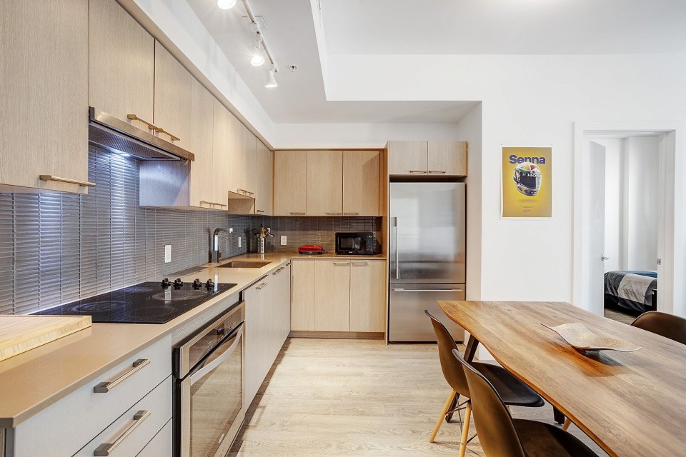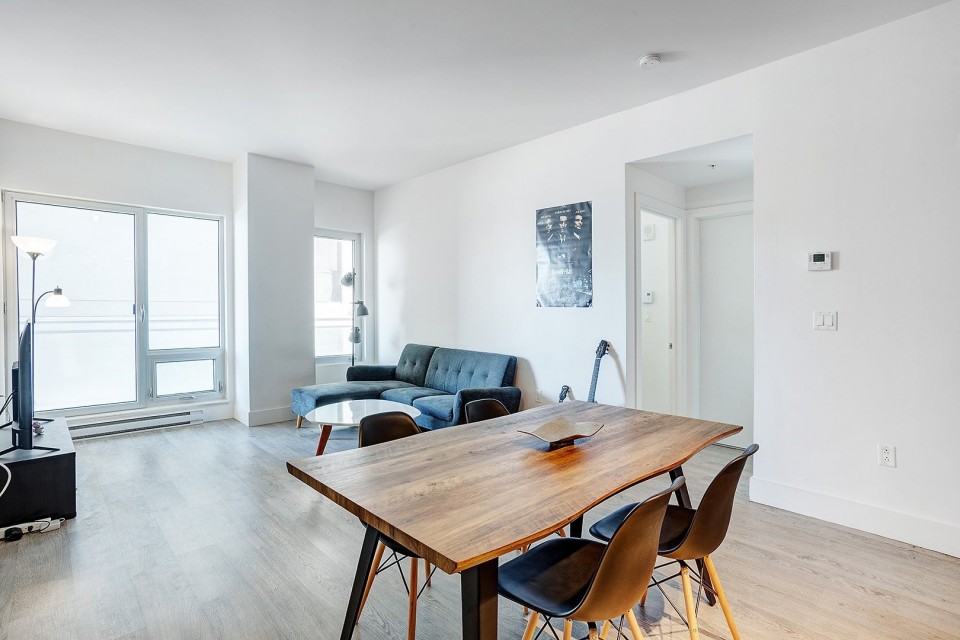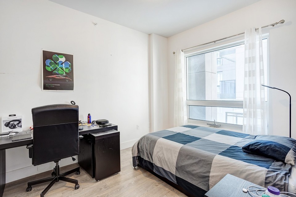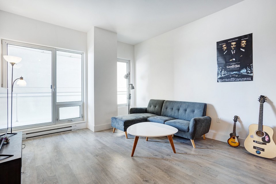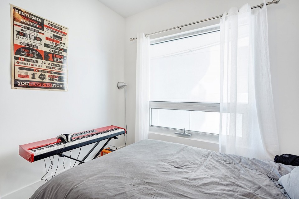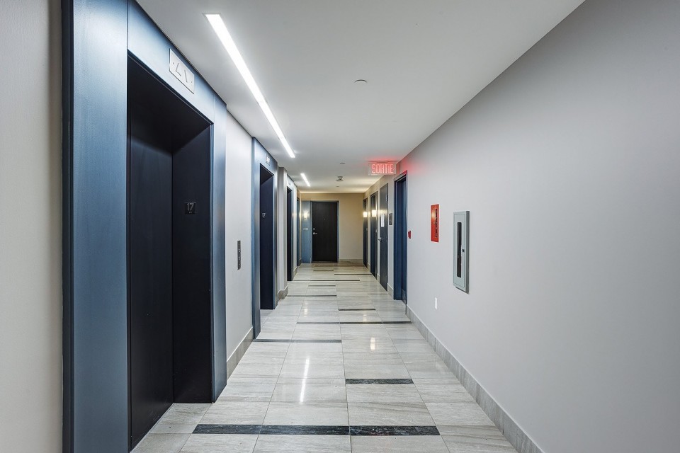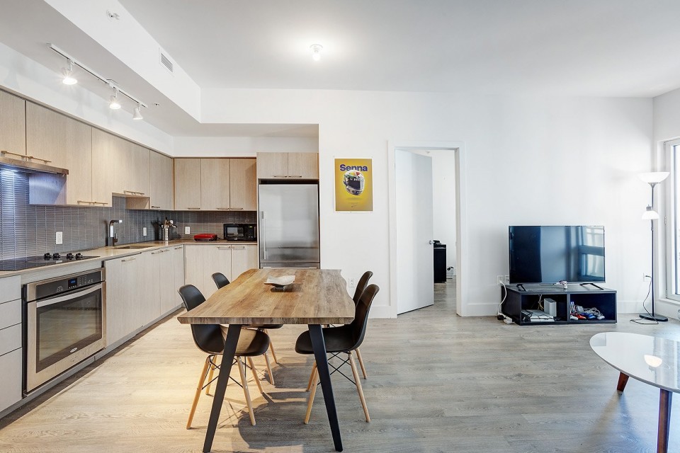 17th flr very spacious unit in the stylish LE PETERSON, offering 2 BDRM, 2 BATH + den, large windows, big balcony, and all the amenities of this luxury building. Buy this condo and be close to the financial district, McGill University, public transport, and the Quartier des Spectacles entertainment district. One locker included in the sale! Currently occupied with tenants. At least 24 hrs notice for visits. The luxurious Le Peterson building offers you 24/7 security,3 high speed elevators, a guest suite for your overnight visitors, and 5 common spaces for socialising: On the ground floor there is #1) a party/games room with large screen television, Fuzball & pool tables, popcorn and Nespresso machines as well as a presentation kitchen for your events, #2) a quiet piano lounge, and #3) a bike repair and exercise room. The 28th floor has #4) an open skydeck with a 3 flr climbing wall, BBQ, and sunning area, and #5) a gym, situated on the south-east corner and surrounded by wrap-around floor to ceiling windows offering a grand view of the Entertainment District and the StLaurent River!