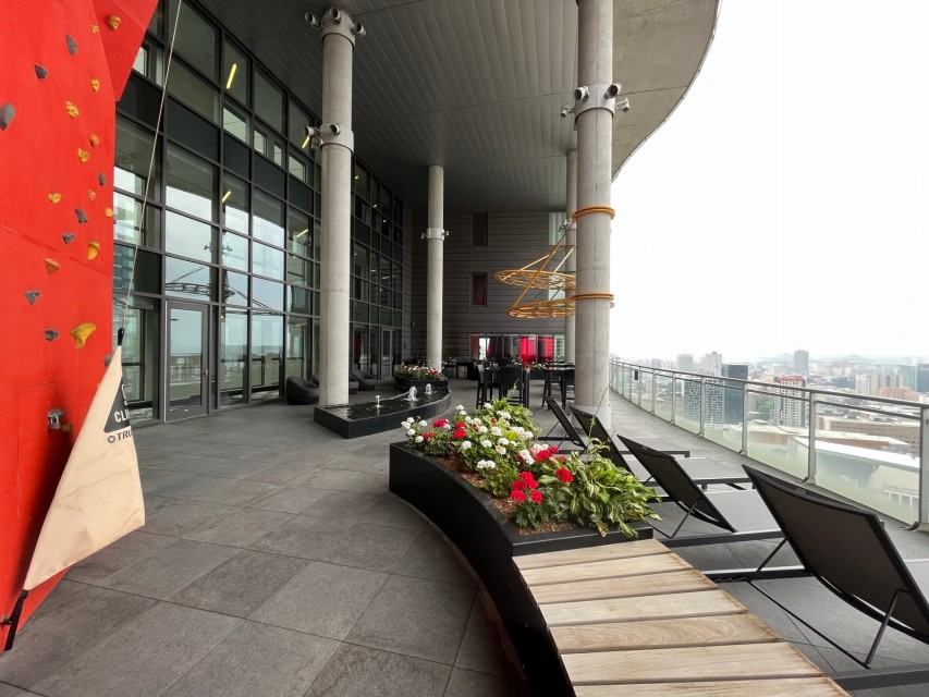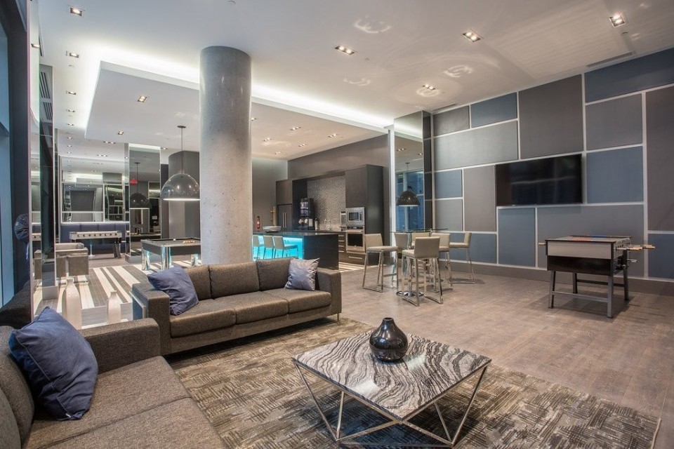 VERY spacious unit on the 23rd flr of the stylish LE PETERSON offering 2 BDRMS, 2 bathrooms, + DEN, large windows and balcony. Rent this condo and enjoy all the amenities of this luxury building, and be close to the financial district, McGill University, public transport, and the Quartier des Spectacles. Available June 01, 2025. This well designed apartment offers 2 bedrooms, 2 bathrooms, a large living/ dining area plus a separate den and a very large balcony! This unit is perfect for students to share. The luxurious Le Peterson building offers you 24/7 security, 3 high speed elevators, a guest suite for your overnight visitors, and FIVE (5) common spaces for socialising. On the ground floor there is 1) a party/games room with large screen television, Fuzball & pool tables, popcorn and Nespresso machines as well as a presentation kitchen for your events, 2) a quiet piano lounge, and 3) a bike repair and exercise room. The 28th floor has 4) an open skydeck with a 3 flr climbing wall, BBQ, and sunning area, and 5) a gym, situated on the south-east corner and surrounded by wrap-around floor to ceiling windows offering a grand view of the Entertainment District and the St Laurent River! Please note, no cannabis, and no short term rental such as Air BnB are permitted in the building.