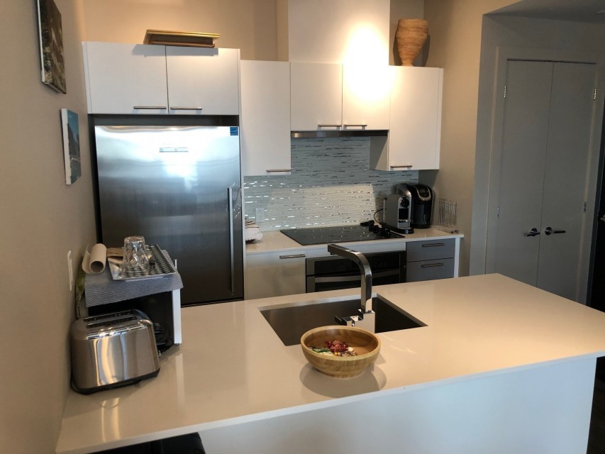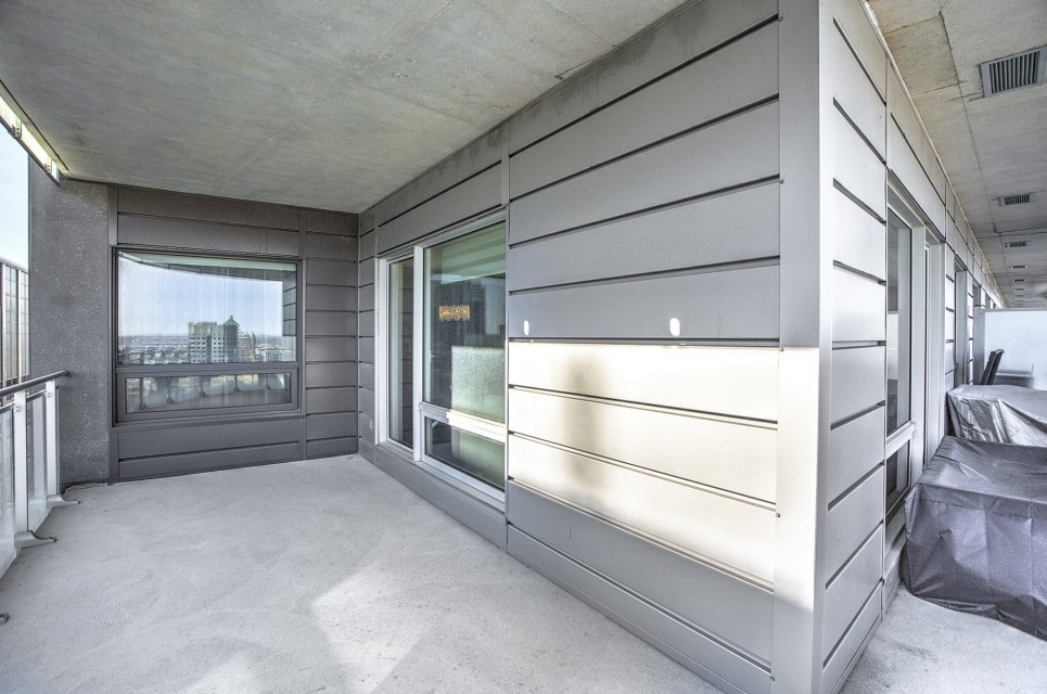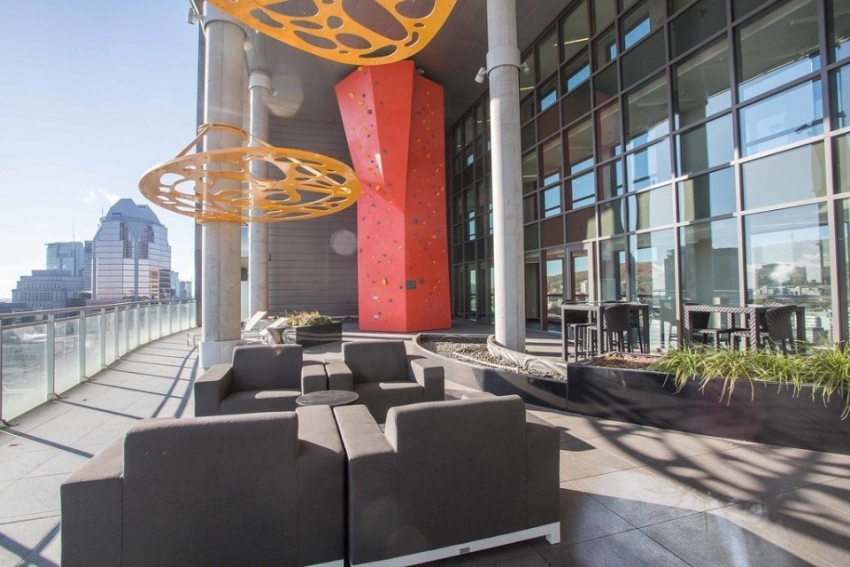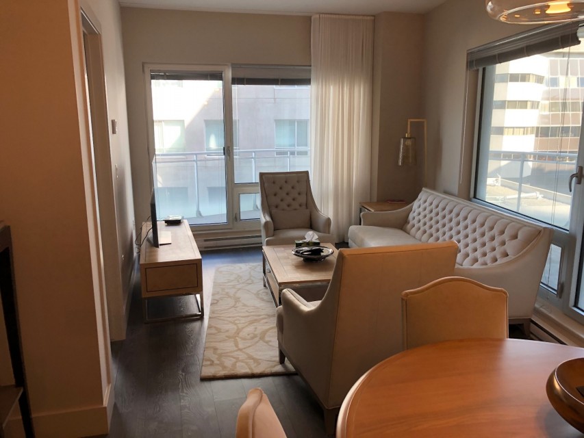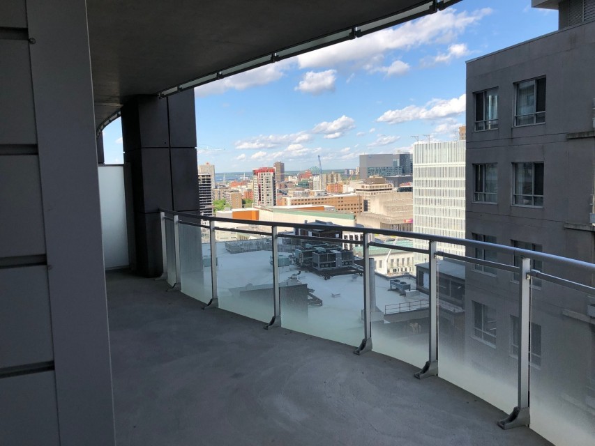 FULLY FURNISHED 18th fl southwest corner unit in the luxurious LE PETERSON bldg offers 2 bdrms + 2 bathrms + enormous 300 sf wrap-around balcony! Place Des Arts Metro Station, the financial district, McGill University, public transport are 2 step away. Enjoy sunshine all day and stunning views all evening! One year lease minimum. Occupancy October 01 2025. FULLY FURNISHED. Minimum one year lease. Tenant must pay building moving fees and deposit. Tenant must get property insurance. The luxurious Le Peterson building offers you 24/7 security, 3 high speed elevators, a guest suite for your overnight visitors, and FIVE(5) common spaces for socialising. On the ground floor there is 1) a party/games room with large screen television, Fuzball & pool tables, popcorn and Nespresso machines as well as a presentation kitchen for your events, 2) a quiet piano lounge, and 3) a bike repair and exercise room. The 28th floor has 4) an open skydeck with a 3 flr climbing wall, BBQ, and sunning area, and 5) a gym, situated on the south-east corner and surrounded by wrap-around floor to ceiling windows offering a grand view of the Entertainment District and the St Laurent River! Please note, no pets, no short term subletting, no smoking, no cannabis will be permitted in the apt. Tenant must acquire tenant insurance with civil liability before moving in, and pay the moving fees of the building.