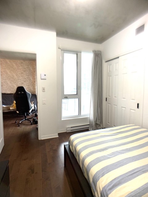 Location Location and Location* - Heart of downtown Montreal - Steps away from McGill and Concordia University - shopping center, restaurant, Bars, museum, Park Mont-Royal etc. - The building has roof top terrance with BBQS - fully equipped guym, high ceillings. -high quality of city live. -one bedroom and one den (big size) -Perfect for couples, students and young professional and investor! * Location Location and Location* The owneris very sincere in selling this two-bedroom apartment There will definitely be surprises, and we look forward to your visit. This bright unit has 2 bedroom, 1 bathroom, 1 locker in basement as well a large private terrace. This condo offers a high-quality soundproofing, large windows and quality finishes. In addition, the open-concept, modern-looking kitchen has plenty of storage. -This building features a prestigious entrance hall, and an exercise room and a large roof terrace offering breathtaking views. - Heart of downtown Montreal - Steps away from McGill and Concordia University - shopping center, restaurant, Bars, museum, Park Mont-Royal etc. - The building has roof top terrance with BBQS - fully equipped guym, high ceillings. -high quality of city live. -Perfect for couples, students and young professional and investor! close to Metro Provigo, Pharmaprix, Saint-Catherine etc. Concordia University and Mcgill Unversity one inside garage space is availbel for extral $53000