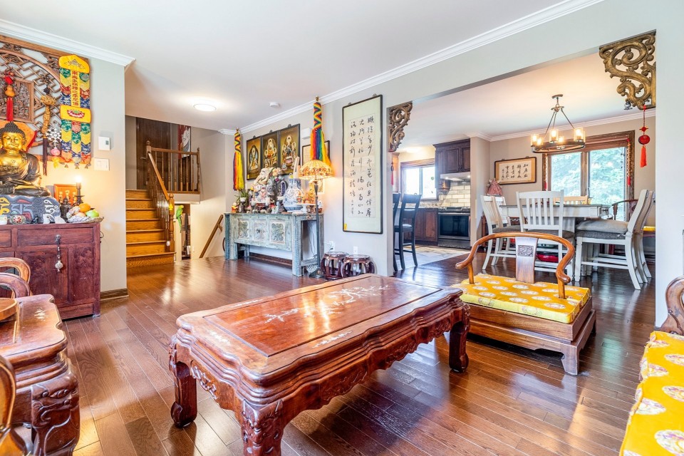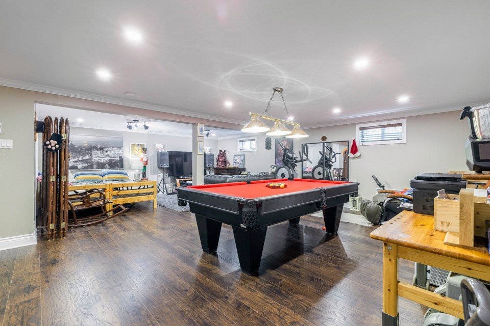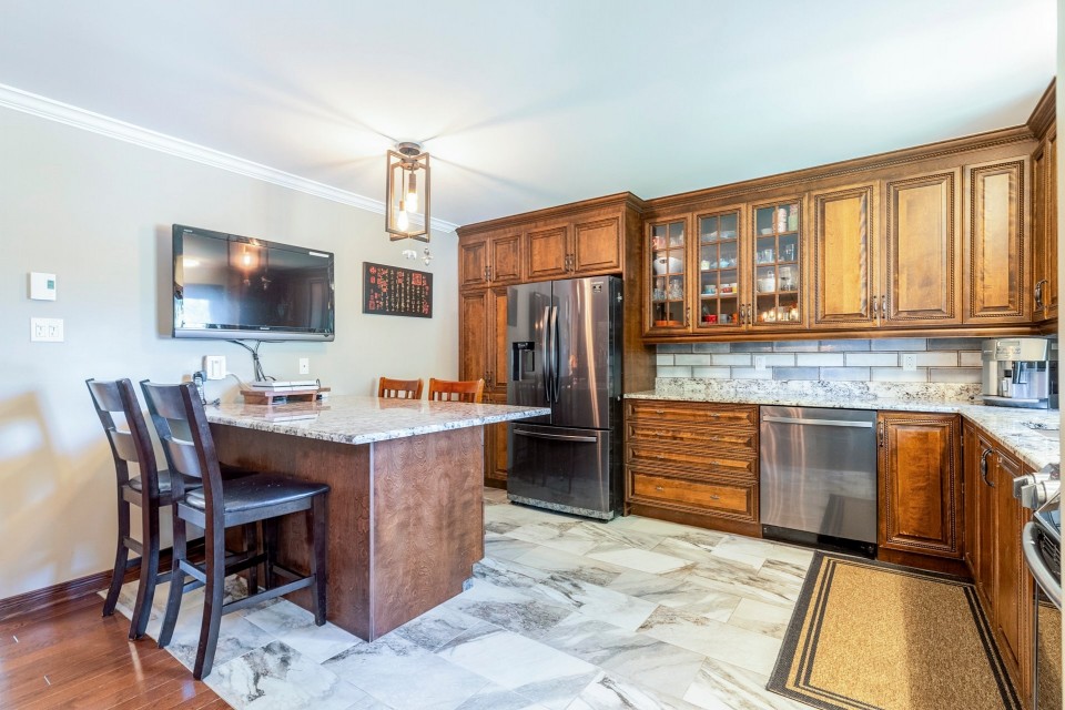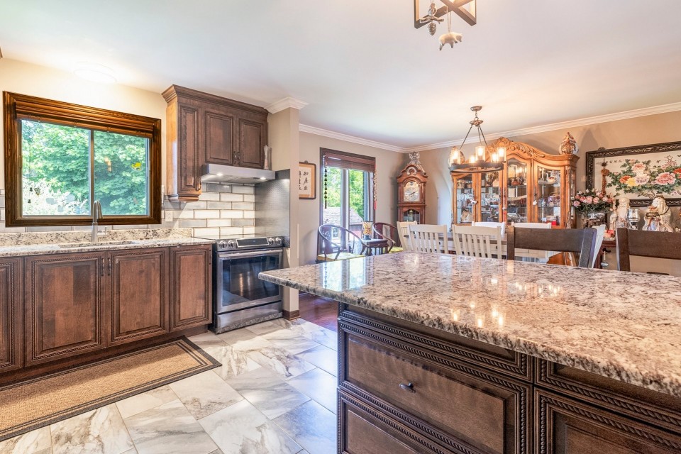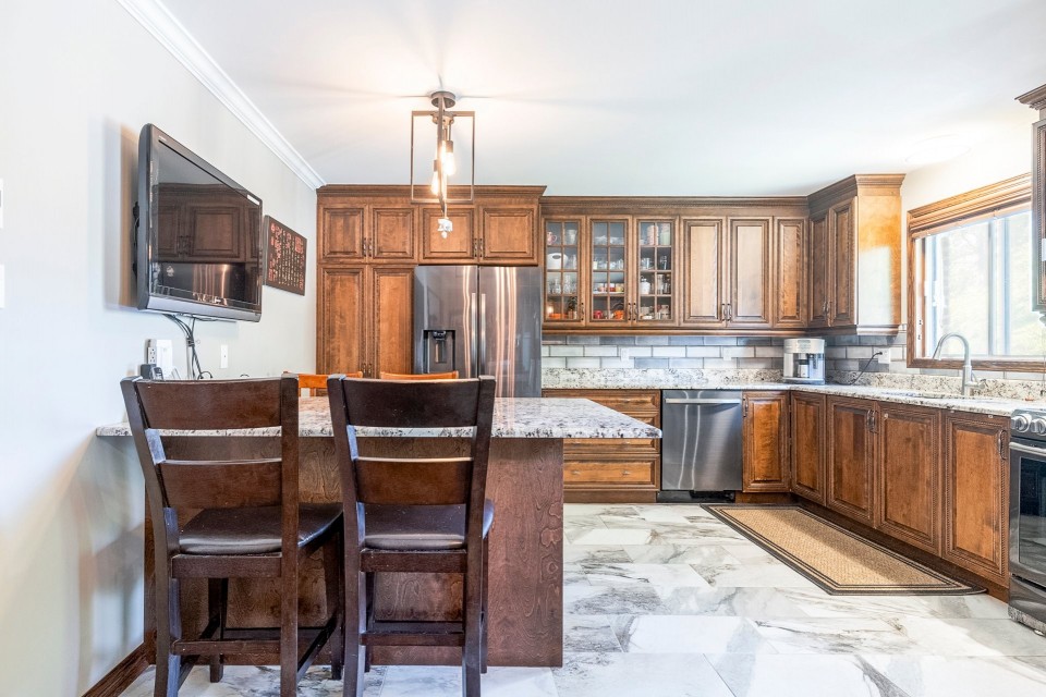 Highlights: *4 bedrooms (3+1), including a master with ensuite *Bright open-concept kitchen and dining area *Cozy family room with fireplace and backyard access *Finished basement with playroom, office, and cold room *Double garage (20x20 ft) *No rear neighbors, large private yard *Extremely well maintained *Near Émile-Nelligan school, Costco, Fairview, Hwy 40 This is a rare opportunity to own a turnkey property in one of Kirkland's best neighborhoods. Schedule your visit today! Spacious 4-Bedroom Home in Kirkland's Prestigious Lacey Green Located in the highly sought-after Lacey Green area of Kirkland, this beautifully maintained split-level home--model Le Grand Split--offers 4 bedrooms (3+1), a finished basement, and a double garage. Backing onto green space with no rear neighbors, it combines privacy, comfort, and convenience in one of West Island's best neighborhoods. Designed for Comfortable Family Living The heart of the home is its bright, open-concept kitchen and dining area, centered around a spacious island perfect for casual meals, entertaining, or family gatherings. The adjacent cozy family room features a highly efficient fireplace for winter warmth and a patio door that opens directly onto a large backyard--ideal for outdoor living. Peaceful and Private Bedrooms Upstairs, you'll find three generously sized bedrooms, including a large master with its own ensuite bathroom and full privacy. One of the secondary bedrooms includes a charming 6x6 ft alcove--an ideal play nook or reading space for a child. Fully Finished Basement with Bonus Spaces The basement is a true highlight: a spacious playroom accommodates a pool table and home theater setup, with integrated speaker wiring connecting to the main level. A sub-floor provides added insulation and comfort. There's also a quiet, central home office that could easily serve as a fourth bedroom. Don't miss the large cold room--perfect for storage or a wine cellar. Outdoor Enjoyment and Double Garage The private backyard offers space for relaxation and recreation, and above-ground pools are allowed. The 20x20 ft double garage provides room for two vehicles and additional storage. Ideal Location Situated near top-rated École Émile-Nelligan, this home is also just minutes from Fairview Shopping Centre, Costco, and Highway 40. The area is part of a mature, family-friendly English-speaking community known for its tranquility and easy access to services.