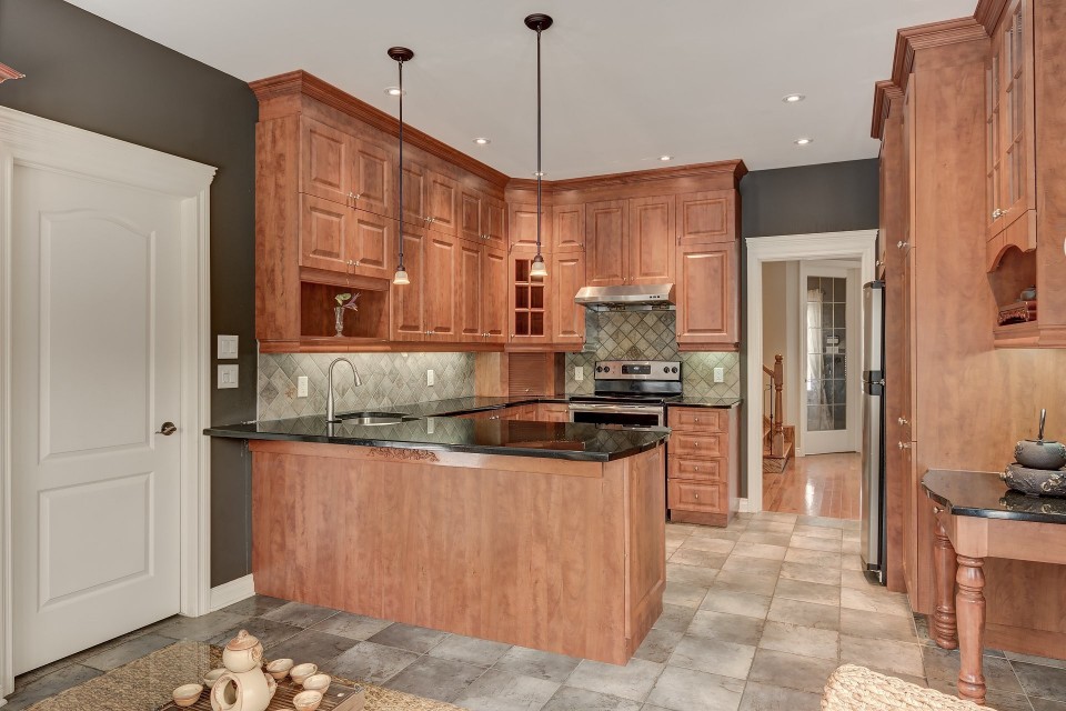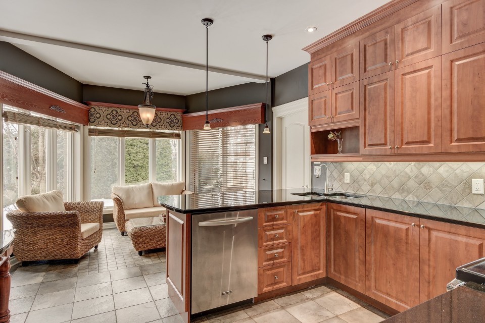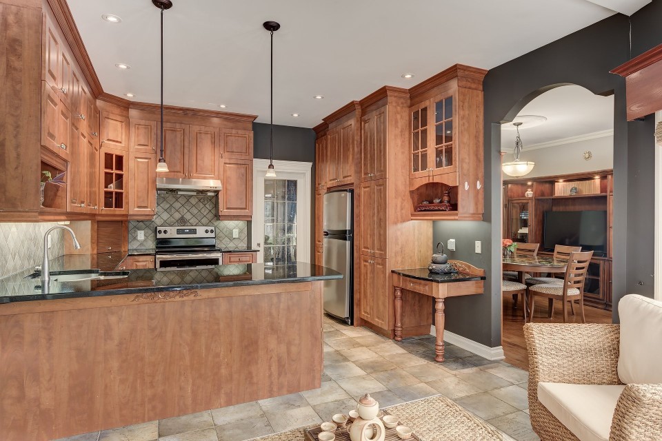 Very nice house overlooking the park, close to all services. Designed and well maintained, 9 feet ceiling on the ground floor, landscaping with inground pool. At the end of the street, enjoy the tranquility. On the second floor you find 4 bedrooms and a bathroom. Magnificent kitchen with granite counter and dining area. The owner does not know if the swimming pool, fireplace and chimney comply with the municipality's regulations or not, the buyer have to check them himself.