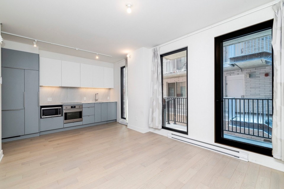 Large bright 3 1/2 condo with walk-in closet and cool balcony. Open concept kitchen and living room, modern design, elegant finishes, ready for move in. New building of 2022 from the very renowned developer Prével. The common areas will charm you, which offers terraces and a rooftop pool, a workout room, a large lobby and outdoor lounge areas with incredible views! Perfect location, just a 4-minute walk from Papineau Metro station, in the upscale Esplanade Cartier, near parks, shops, restaurants and all services!