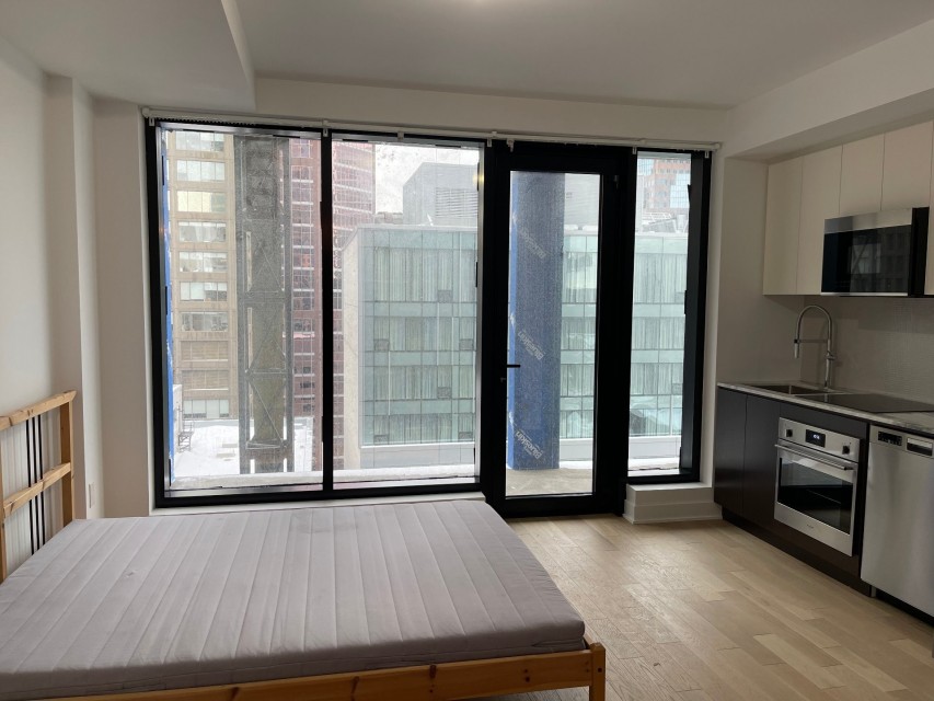 Superb new building MAA in the heart of downtown Montreal! Luxurious studio, open concept space, wood floors, modern finishes, large windows, lots of natural light. Close to all services, universities, Peel and REM train and metro station, public transportation, shopping centers and much more!