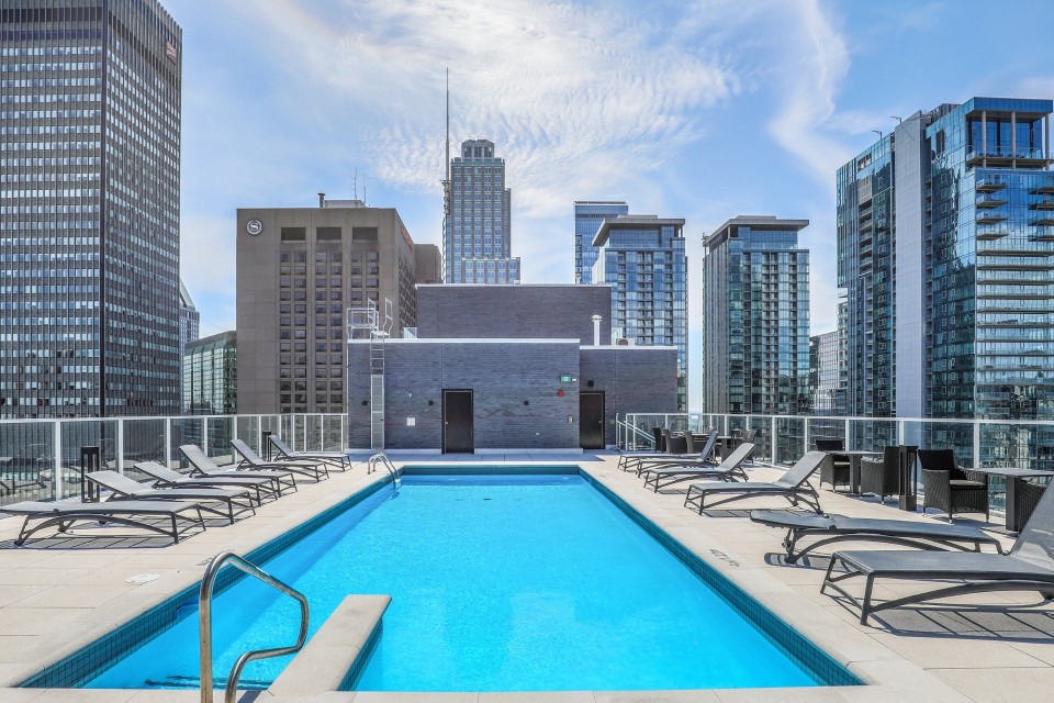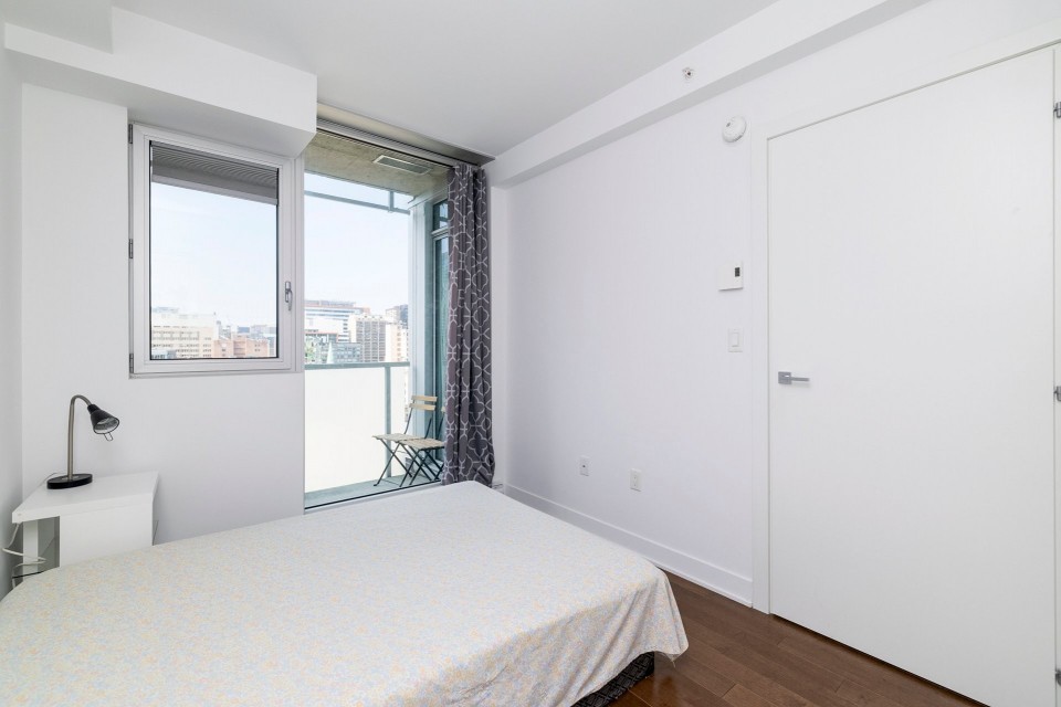 The high quality new apartment is located in the best part of the city center, with a high-end decoration and a full set of brand's electrical devices. The apartment is on the 14th floor, with beautiful urban landscapes 24 hours a day. Quality condo - Wall air conditioning - roof terrace with outdoor pool and BBQ - High -end kitchen with quartz counter - Bathroom with large glass shower - fully equipped interior gym - Panoramic view from the balcony and the roof Public transport: - peel (5 min): green line - Lucien-l'Allier (10 min.): Orange line - Lucien-l'Allier station (10 min.): Subscribe train Proximity amenities: - high-end shopping district on St-Catherine Street - Restaurants and cafes - Grocery store - Pharmacy - Universities