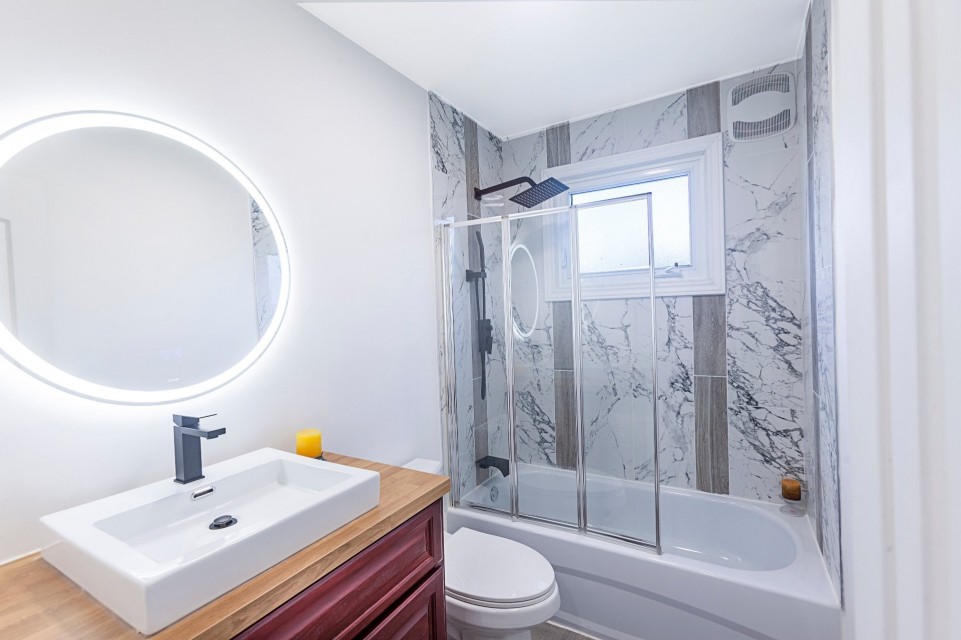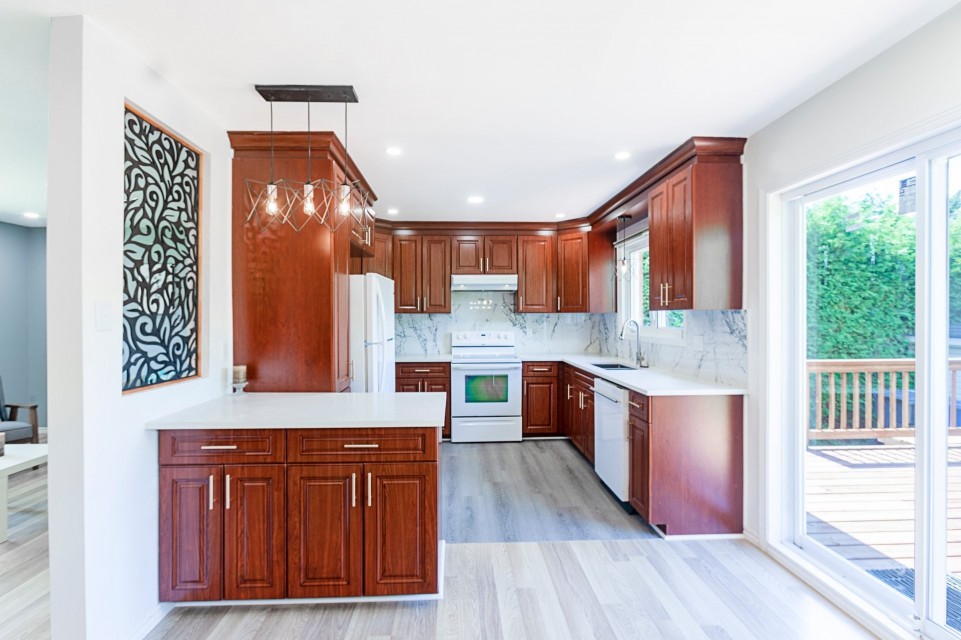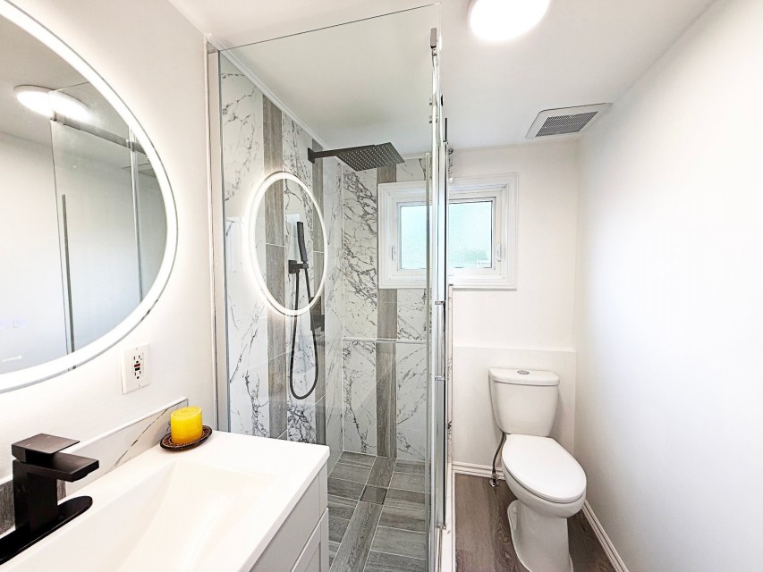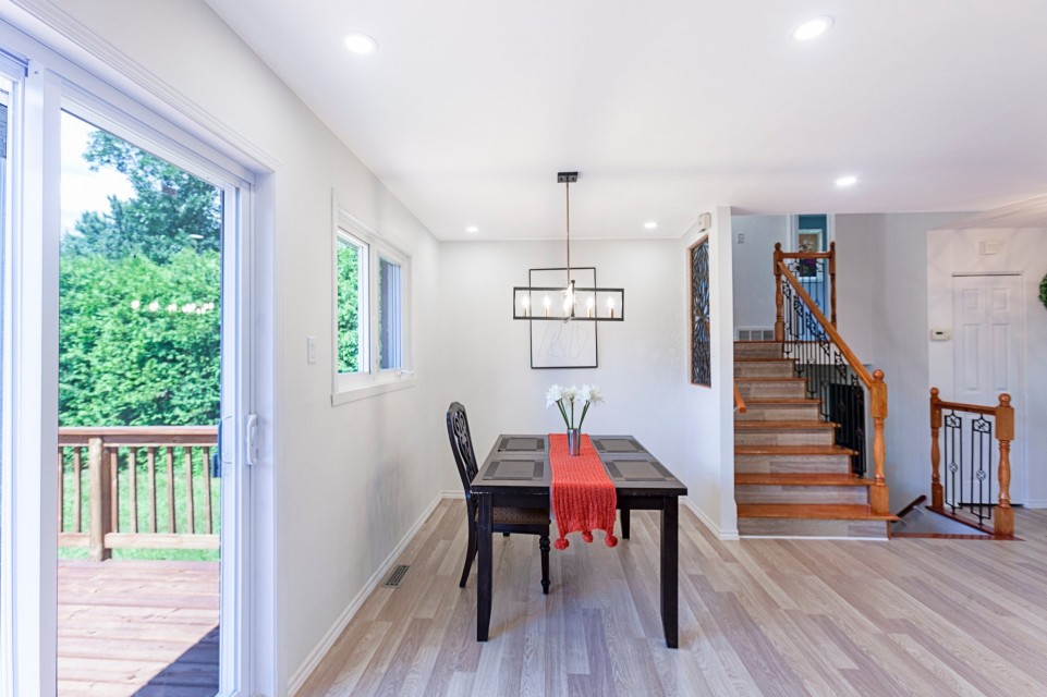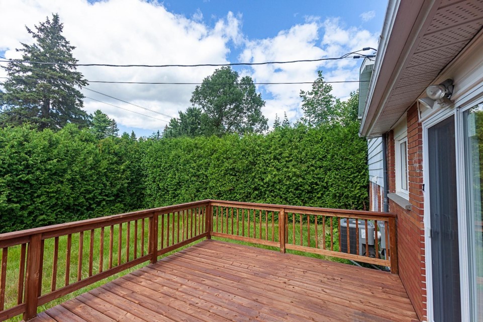 Charming property thoughtfully updated, ideally located near schools, parks, shops, train station, and major highways. Fully renovated in 2023. Offers 4 upstairs bedrooms, 2 modern bathrooms, and a spacious finished basement with a family room and workshop area. Generous and private lot with well-maintained landscaping and a refreshed patio. Solid brick construction on all four sides and central air conditioning. A perfect turnkey home for families and nature lovers seeking peace and comfort. This completely renovated home offers the perfect blend of modern comfort and convenient suburban living. Ideally situated near top-rated schools, parks, shopping, public transit, major highways, and nature reserves, the property has undergone a comprehensive transformation in 2023. It features four above-ground bedrooms, two sleek bathrooms, and a spacious basement with a large family room and workshop. The private, landscaped yard with a newly rebuilt deck provides an inviting space for relaxation or entertaining. Built with solid four-sided brick construction and equipped with central air conditioning. It's ideal for families, professionals, or nature lovers seeking a turnkey home with space for a dedicated office. Prime Location Highlights: *Only a 3-minute drive or 15-minute walk to grocery stores like Provigo and IGA *4 minutes by car to Courtland Park International School *8 minutes to St-Bruno's largest Costco and a major shopping center with Hudson's Bay, Toys R Us, popular retail stores, and dining options *Just 10 minutes from Mont-Saint-Bruno National Park--perfect for hiking, fall colors, and winter sports on one of the closest ski hills to Montreal Complete Renovation in 2023: *Interior Paint & Baseboards: Freshly repainted throughout with new baseboards in every room *Lighting: All light fixtures updated to stylish, modern options *Kitchen & Dining Area: Transformed from a closed layout to an open-concept space with all-new cabinetry and countertops *Flooring: Old carpeting removed and replaced with new flooring throughout *Bathrooms: Redesigned and fully renovated--converted from one bathroom and laundry room into two elegant, modern bathrooms *Heating & Cooling: Outdated oil system replaced with an all-new electric HVAC system providing central heating and air conditioning *Staircase: Brand-new staircase installed *Balcony Door: Upgraded to a double French door for enhanced natural light and access *Basement: Completely finished to add versatile living and functional space *Main Water Valve: Replaced for improved reliability *Electrical Panel: Upgraded from 100 amps to 200 amps to support today's power needs 2024 Outdoor Update: *Deck: Fully rebuilt and repainted in summer 2024--ideal for outdoor dining, entertaining, or relaxing in your private backyard oasis