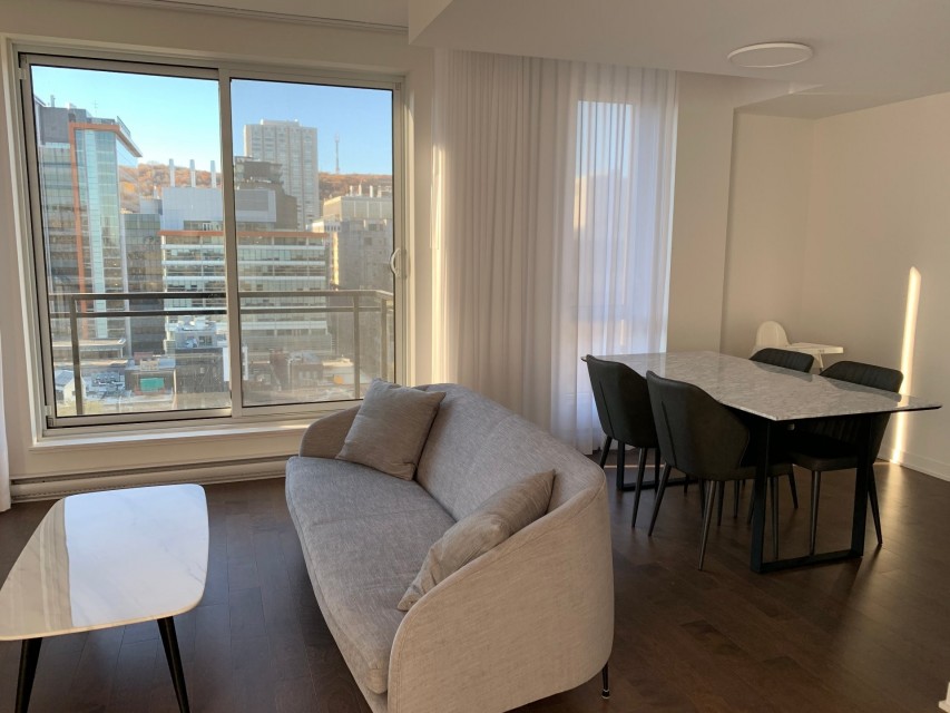 Very rare and magnificent two-storey penthouse, with rooftop solarium, very large private terrace, with beautiful cityscapes day and night, in the best part of downtown. Corner unit, quiet and bright, complete furnished. 3 bedrooms, 2 bathrooms, 1 powder room, 2 large balconies and 2 large parking lots. High quality, complete with brand name electrical appliances, complete furnitures and curtains. Rare Duplex Penthouse Apartment! Privileged location in the city center! Who is lucky! - Solarium on the roof divided into two parts: view room and coffee lounge; - 2 large private rooftop terraces with 24-hour cityscape leases; - 3 bedrooms, 2 bathrooms, 1 shower room, 2 large balconies; - 2 large garages and 1 storage included; - Appliances: refrigerator, oven, dishwasher, hood, microwave, washer and dryer; - Central air conditioning on the 1st floor, wall mounted air conditioning on the 2nd floor. - Complete furnitures and curtains. Equipment includes: - Roof terrace with outdoor pool and BBQ; - Fully equipped indoor gym; - 2 Elevators. Public transport: - Concordia (2 min), Peel (5 min): Green line; - Lucien-L'Allier (5 min): Orange line; - Lucien-L'Allier station (5 min): Suburban train; - Proximity to Highway 720, Highway 10, Highway 15, Rue Décarie and all major accesses. Local amenities: - Concordia University and Mcgill, College Lasalle - The Supreme Hospital and the University of Montreal Hospital; - High-end shopping district on St-Catherine Street; - Cinemas, restaurants, bars and cafes; - Supermarket, grocery store and pharmacy.