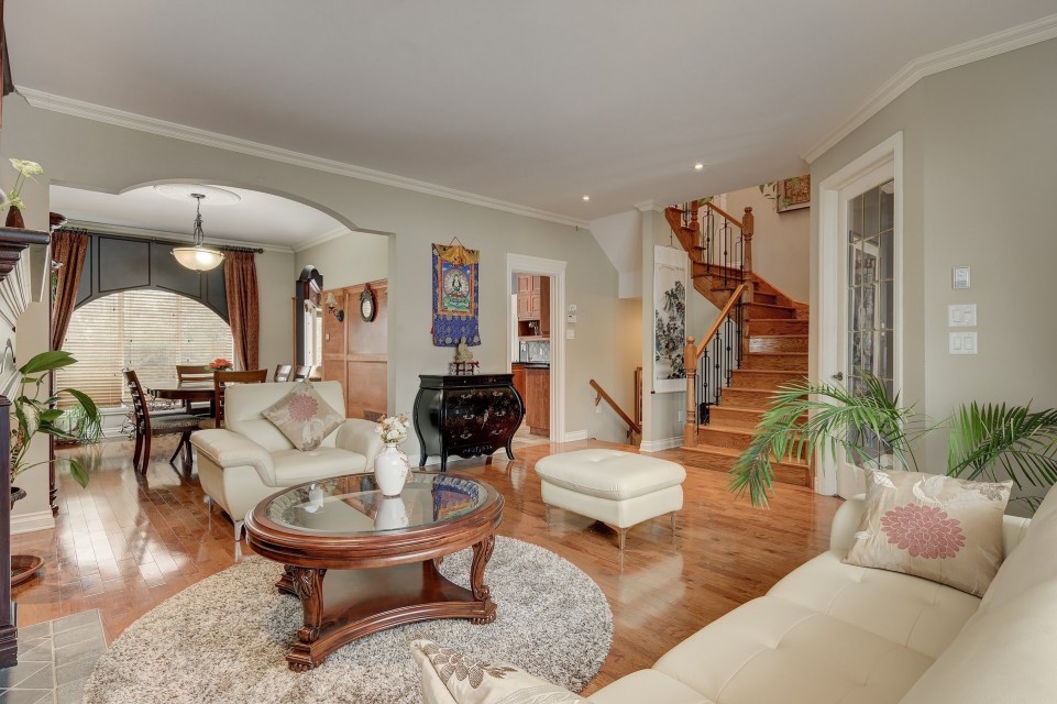 Very nice house overlooking the park, close to all services. Designed and well maintained, 9 feet ceiling on the ground floor, landscaping with inground pool. Occupation right away. At the end of the street, enjoy the tranquility. On the second floor you find 4 bedrooms and a bathroom. Magnificent kitchen with granite counter and dining area. Pyrite test PSPI=0 in the garage and PSPI=1 in the basement. The owner does not know if the swimming pool, fireplace and chimney comply with the municipality's regulations or not, the buyer have to check them himself.