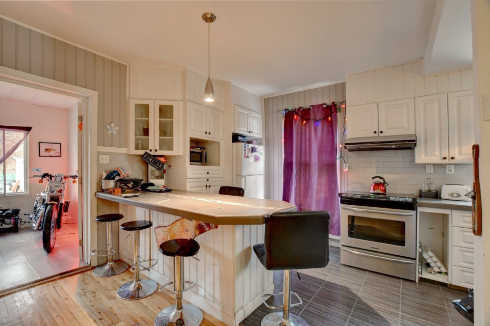 Renovated apartment, main floor with basement, front and back gardend. Close to park, service, public transportation. Two parkings. No animal, no smoking.